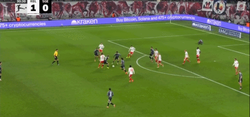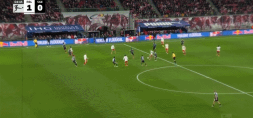 第31分钟,相互传射,哈德助攻鲍姆加特纳破门,莱比锡2-0法兰克福